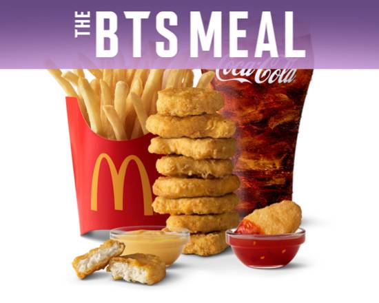 The BTS Meal includes a 10-piece Chicken McNuggets medium World Famous Fries medium Coca-Cola and Sweet Chili and Cajun dipping sauces inspired by popular recipes from McDonalds South Korea. On Monday April 19 the food giant announced it will add The BTS Meal to its menu starting this May. Details about BTS Meal.