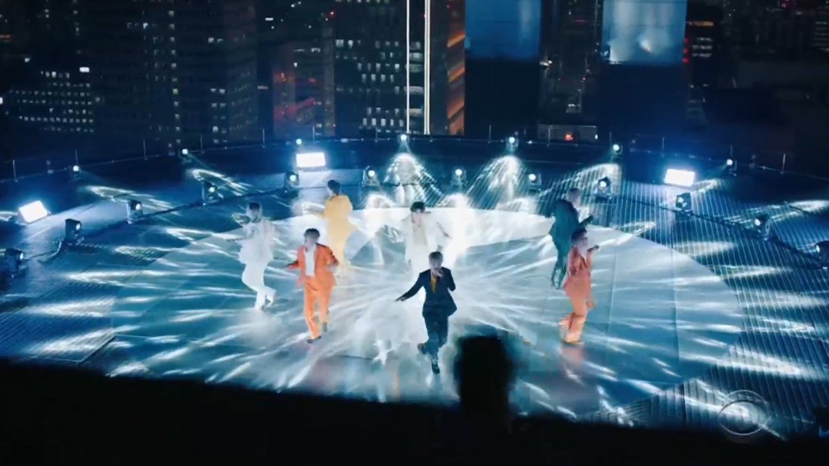 Performing in a Grammy-lined room under a ceiling dripping with flowers in a stairwell and on a spotlight-drenched rooftop BTS highly mobile performance was one of the evenings most energetic. The K-pop superstars performance was a spectacle to watch as their performance ended on the rooftop in Seoul South Korea. The overall theme of this years Grammy Awards will be a round stage as performers will be recording stages from.
